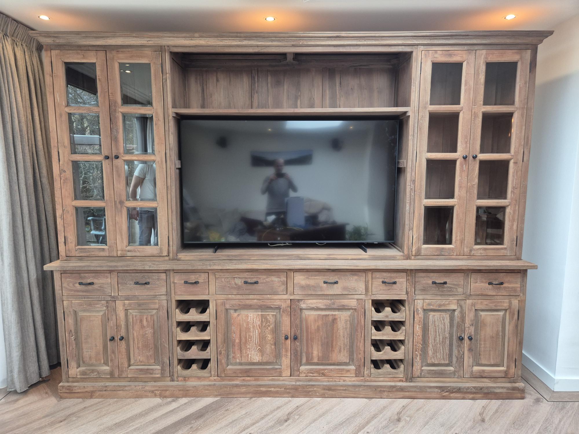 Ben je op zoek naar een grote buffetkast van teakhout die niet alleen een blikvanger is in je interieur, maar ook praktisch te plaatsen? Deze buffetkast in delen van 320×50/40×230 cm is speciaal ontworpen om eenvoudig te vervoeren en te monteren, zelfs in oudere panden of op hogere verdiepingen.
