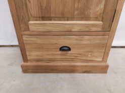 Naast het standaardformaat leveren wij deze teakhouten eendeurskast in iedere maat en indeling. Zo kun je kiezen voor extra laden, andere hoogtes of een aangepaste indeling die perfect aansluit bij jouw woonruimte.