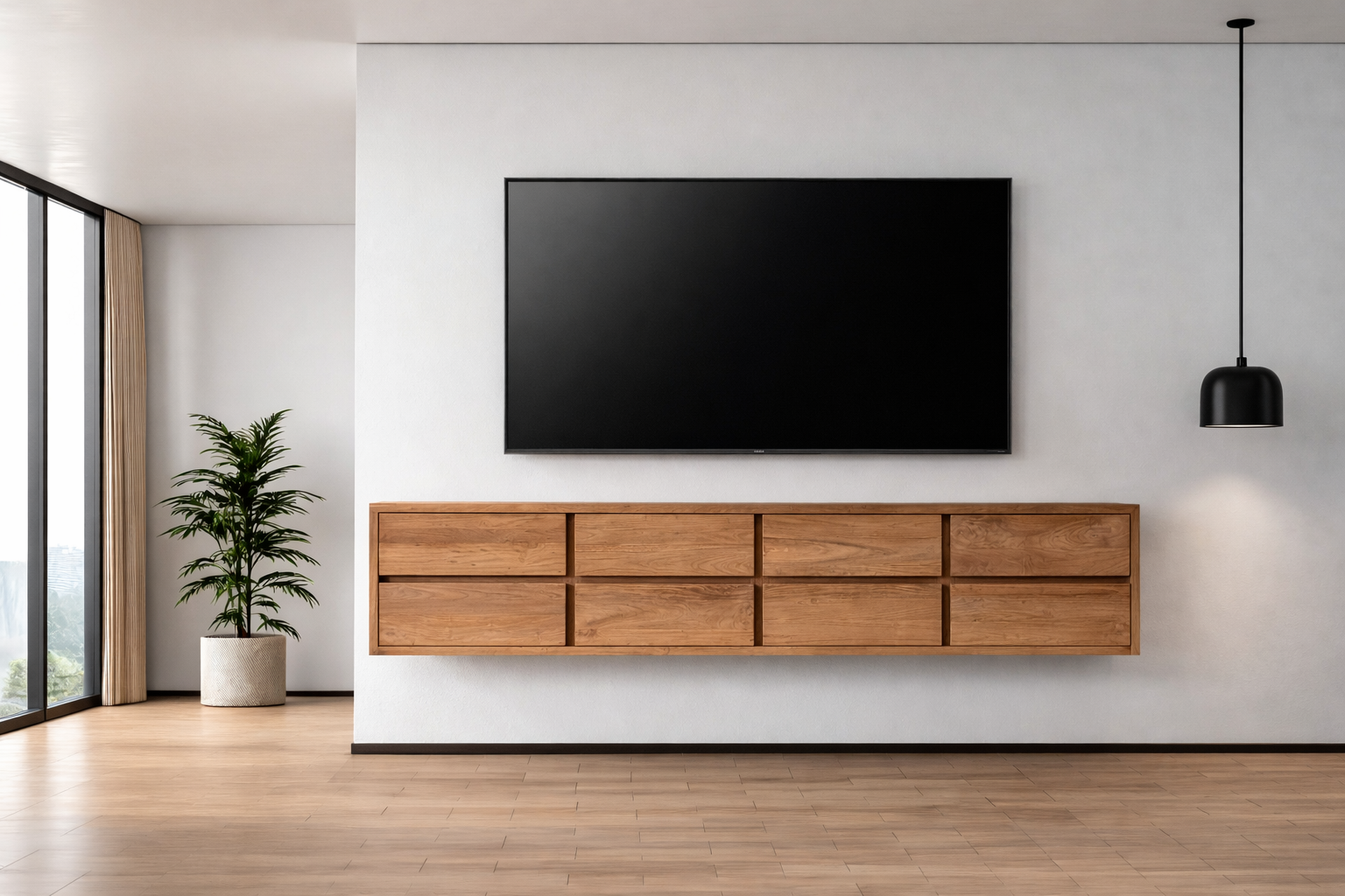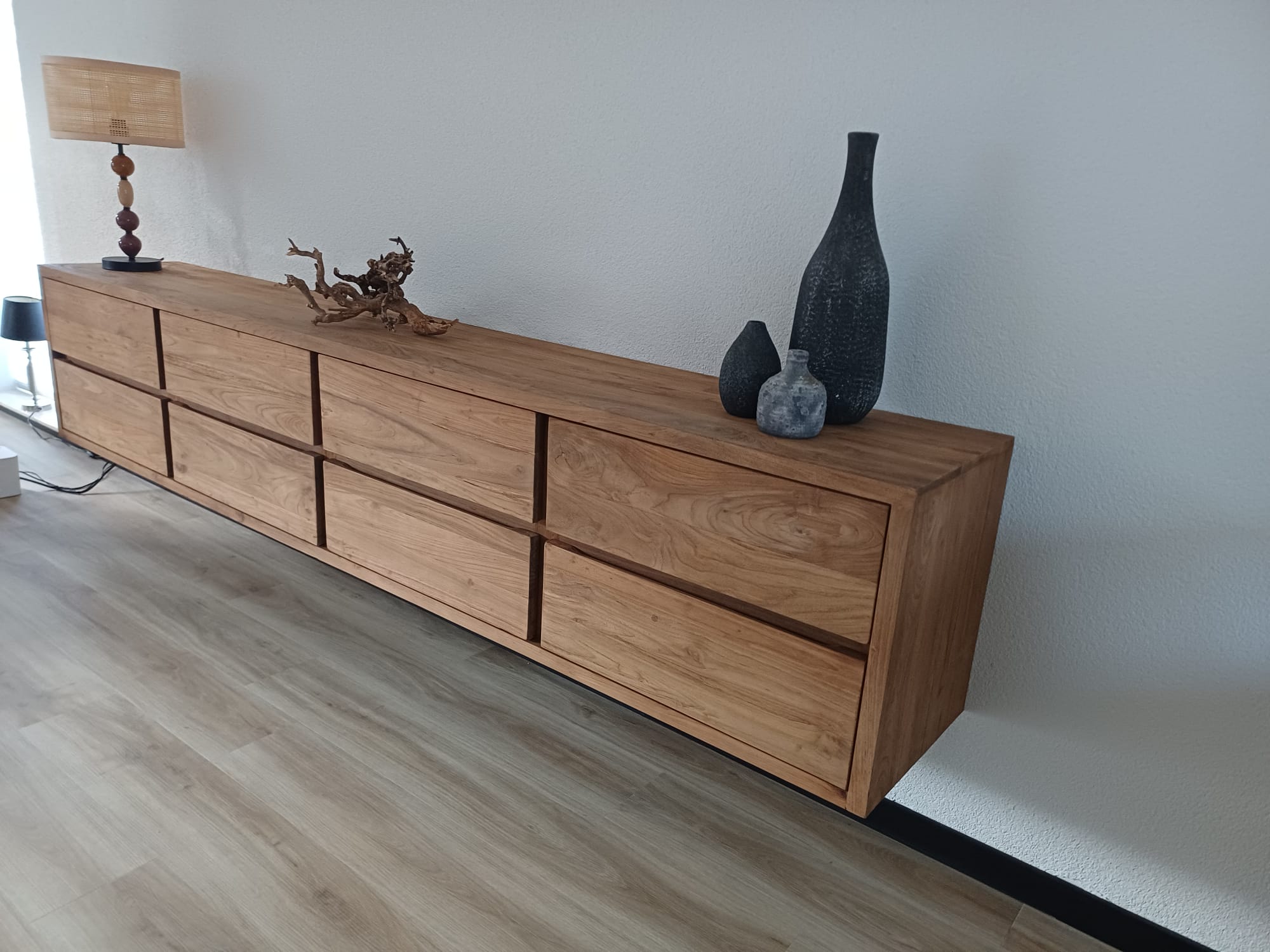 Hangend tv meubel van gerecycled teakhout op maat