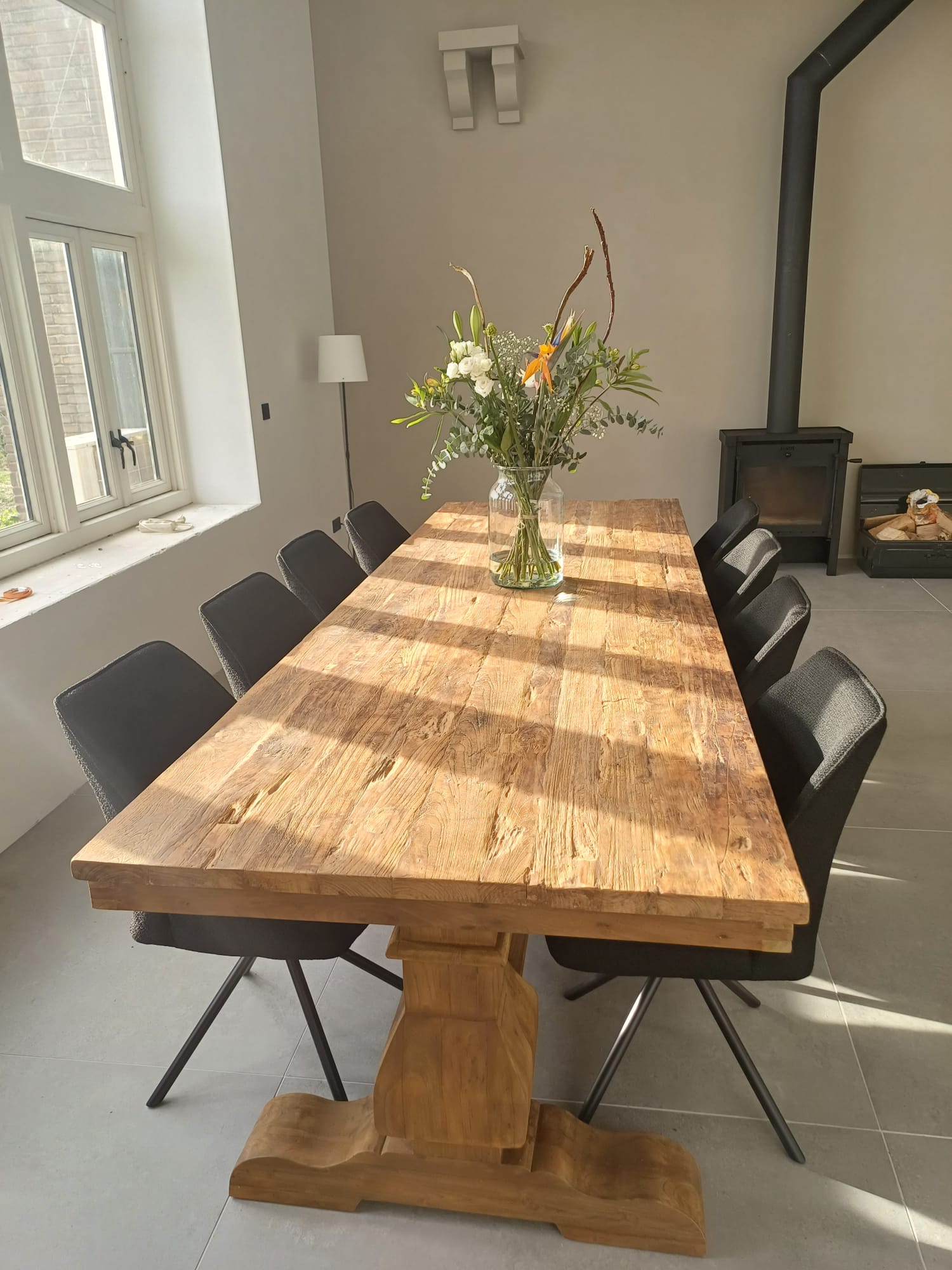 De teakhouten kloostertafel die jij zoekt is 300x100x77cm groot en gemaakt van oud gerecycled teakhout. Het massieve blad is grof afgewerkt waardoor de tafel een mooie landelijke uitstraling krijgt. Onze teakhouten kloostertafels komen uit Indonesië, vanuit Java. Echte meubelmakers maken daar op ambachtelijke wijze onze kloostertafels van gerecycled oud teakhout. De meubelmakers uit Java worden alom geroemd en geprezen voor hun grote vakmanschap. Wij selecteren voor u de beste meubelmakers. Wij willen graag alleen hoogste kwaliteit kloostertafels leveren zodat u vele jaren van dit pronkstuk kan genieten.