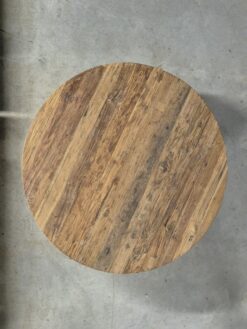 Ronde eettafel 140 cm – Stoere teak tafel met industriële uitstraling