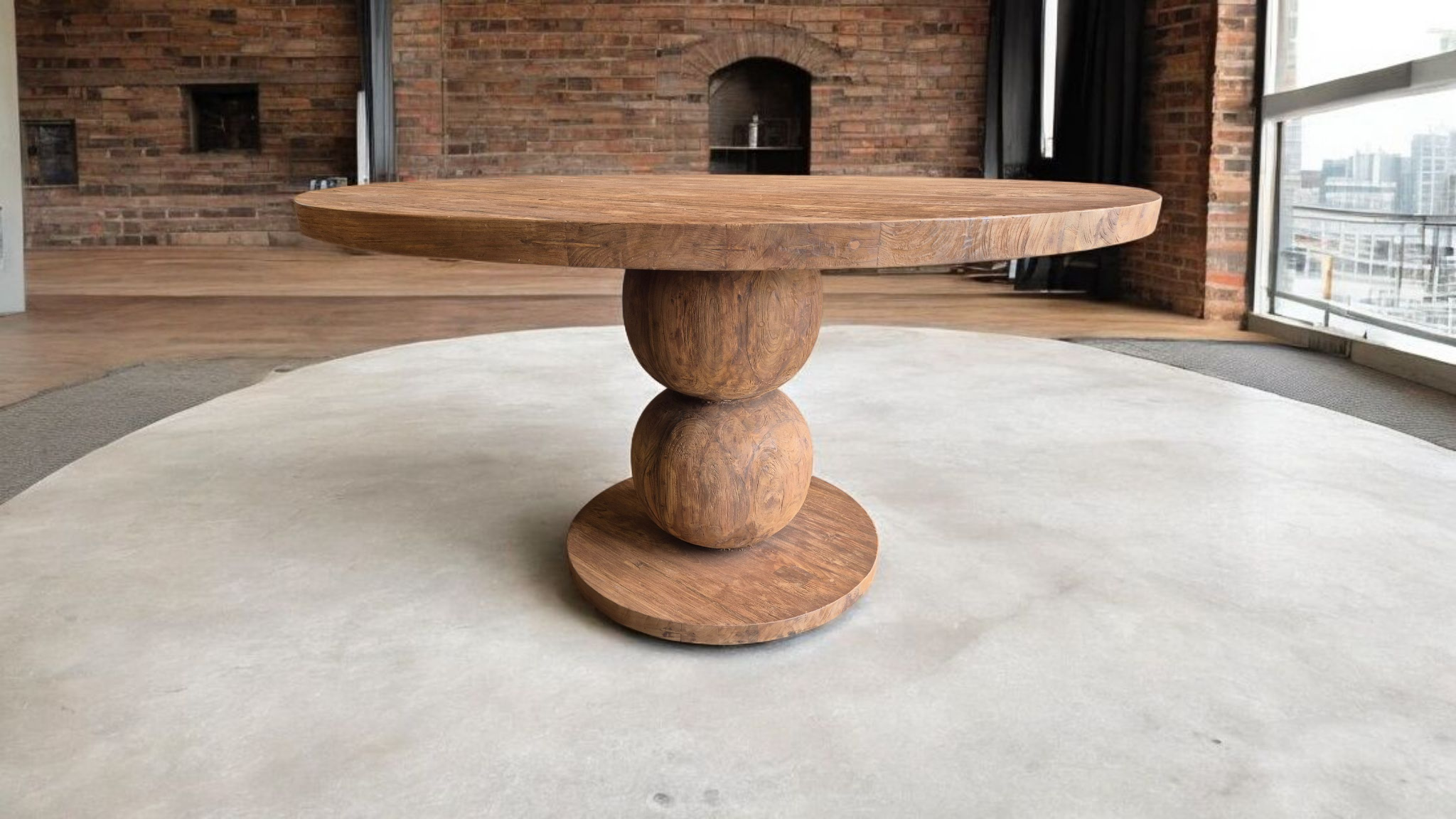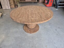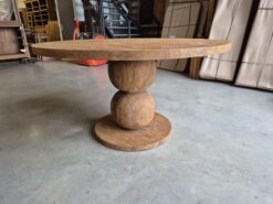 De Boulder eettafel combineert tijdloos design met een artistieke twist. Het ronde blad van oud, gerecycled teak straalt warmte en karakter uit, terwijl de unieke poot – gevormd door twee massieve houten bollen – de tafel een sculpturaal en modern karakter geeft. Deze combinatie maakt de Boulder zowel een functioneel meubelstuk als een kunstwerk in je woonkamer of eetkamer.