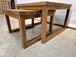 - Set van twee tafels: 70x70x47 cm en 55x55x38 cm