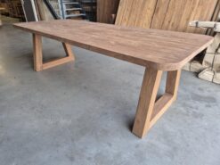 Eettafel met teakhouten trapezepoten – stoer, verfijnd en op maat gemaakt