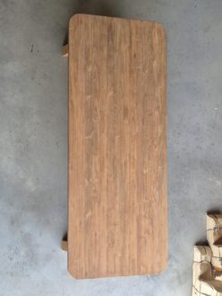 Deze massief teakhouten eettafel met trapezepoten combineert een robuuste uitstraling met verfijnde details. Het tafelblad is gemaakt van hoogwaardig massief teak en meet in dit voorbeeld 240 × 100 × 76 cm. Met een bladdikte van 3 cm oogt de tafel strak en modern, terwijl de afgeronde hoeken zorgen voor een zachte en elegante afwerking. Uiteraard is het mogelijk om het tafelblad in een andere dikte uit te voeren, volledig afgestemd op jouw wensen.