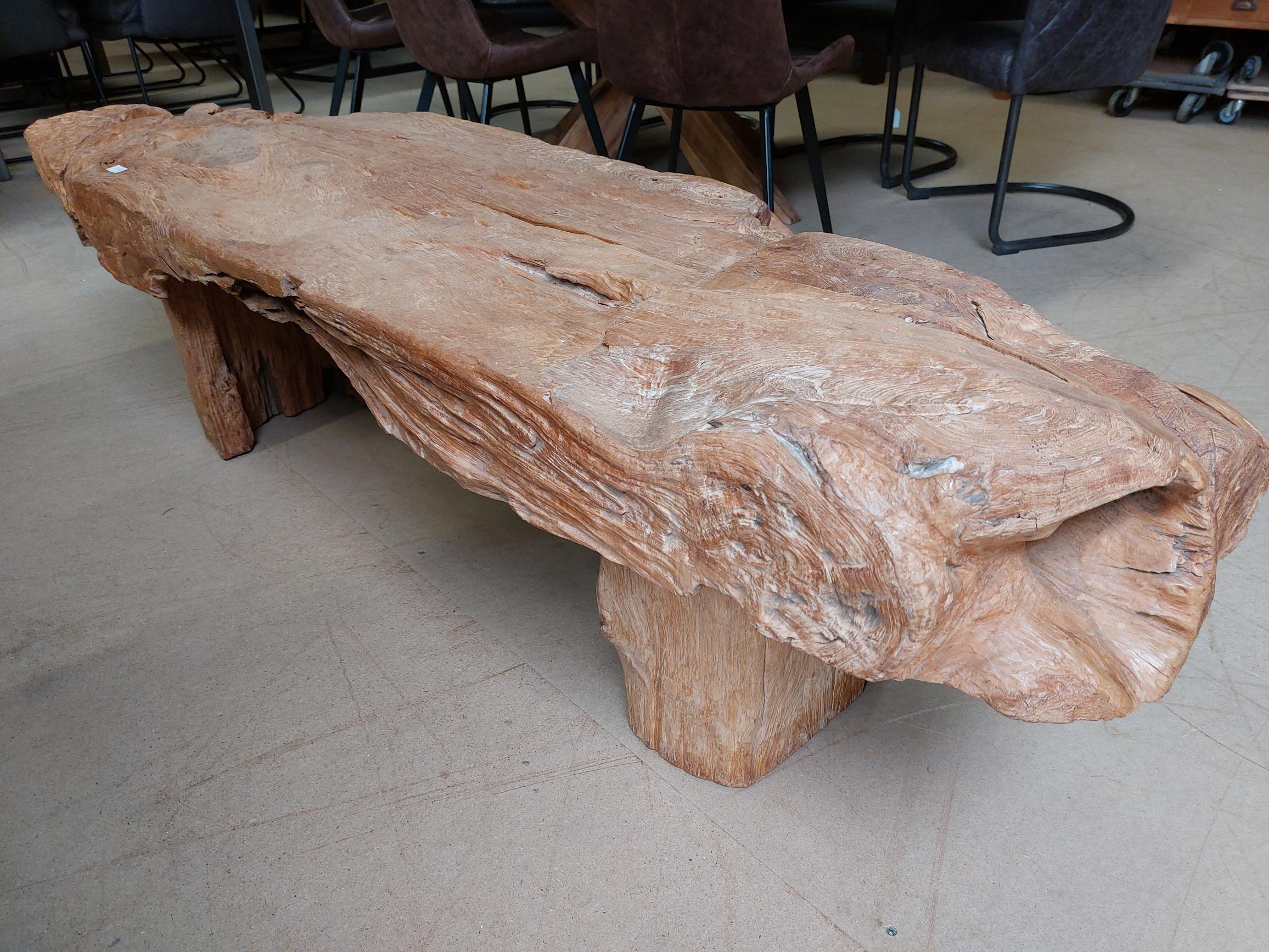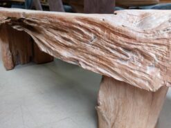 Deze massieve teak salontafel is 190cm breed, 60cm diep en 47cm hoog. Deze unieke tafel heeft een blad van maar liefst 15cm dik. Door de maten van de tafel kan het net zo goed dienen als tv meubel of als (tuin)bank.
